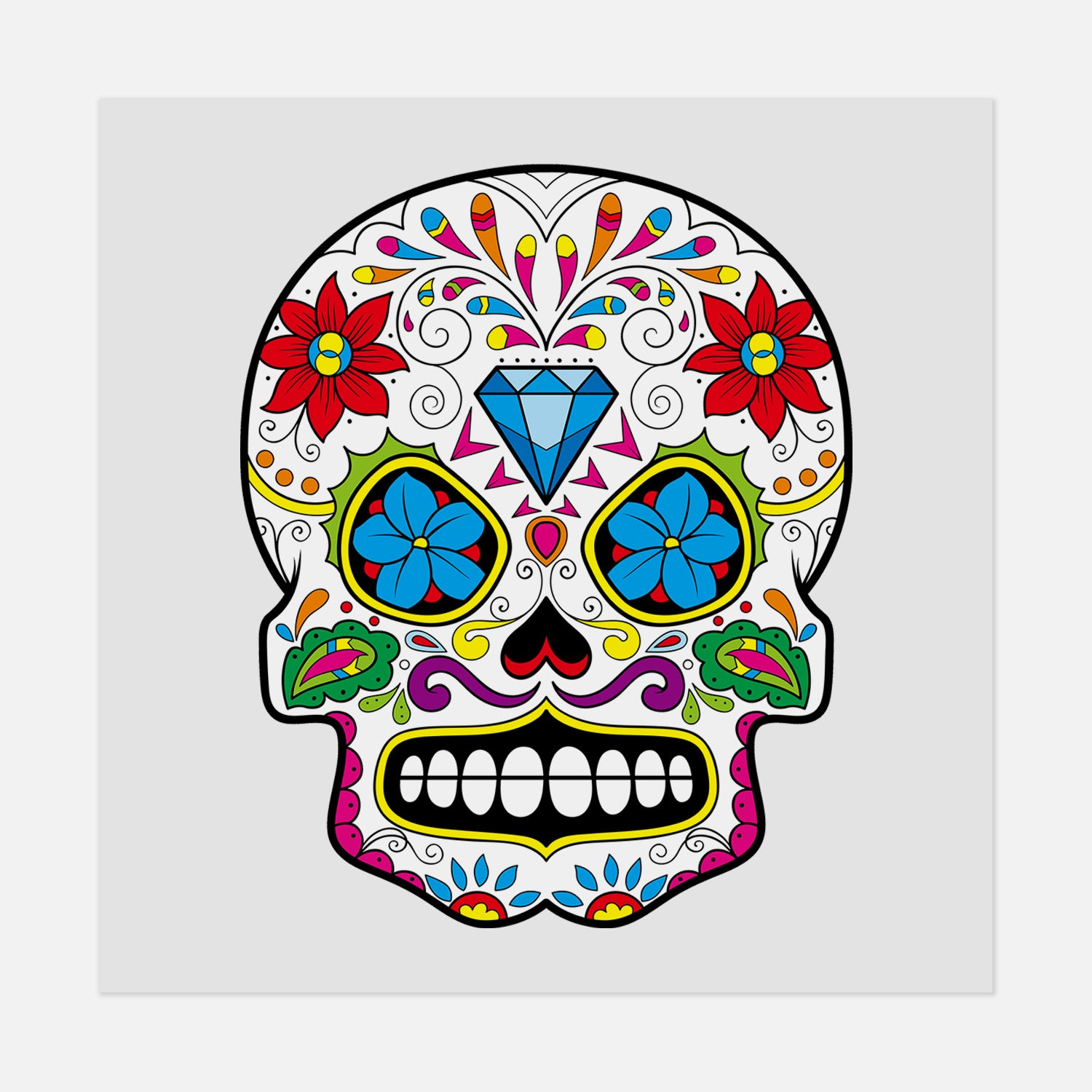 • Cultural Design: Features a beautifully detailed sugar skull inspired by Día de los Muertos, showcasing traditional patterns and vibrant colors.