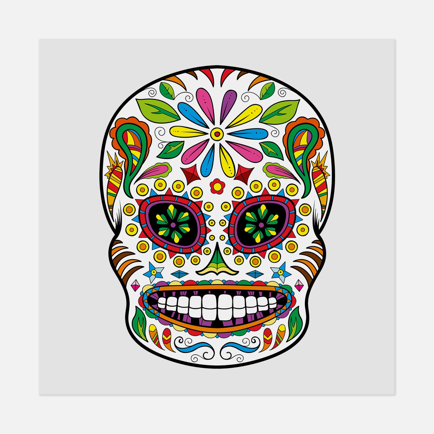 • Cultural Design: Features a beautifully detailed sugar skull inspired by Día de los Muertos, showcasing traditional patterns and vibrant colors.