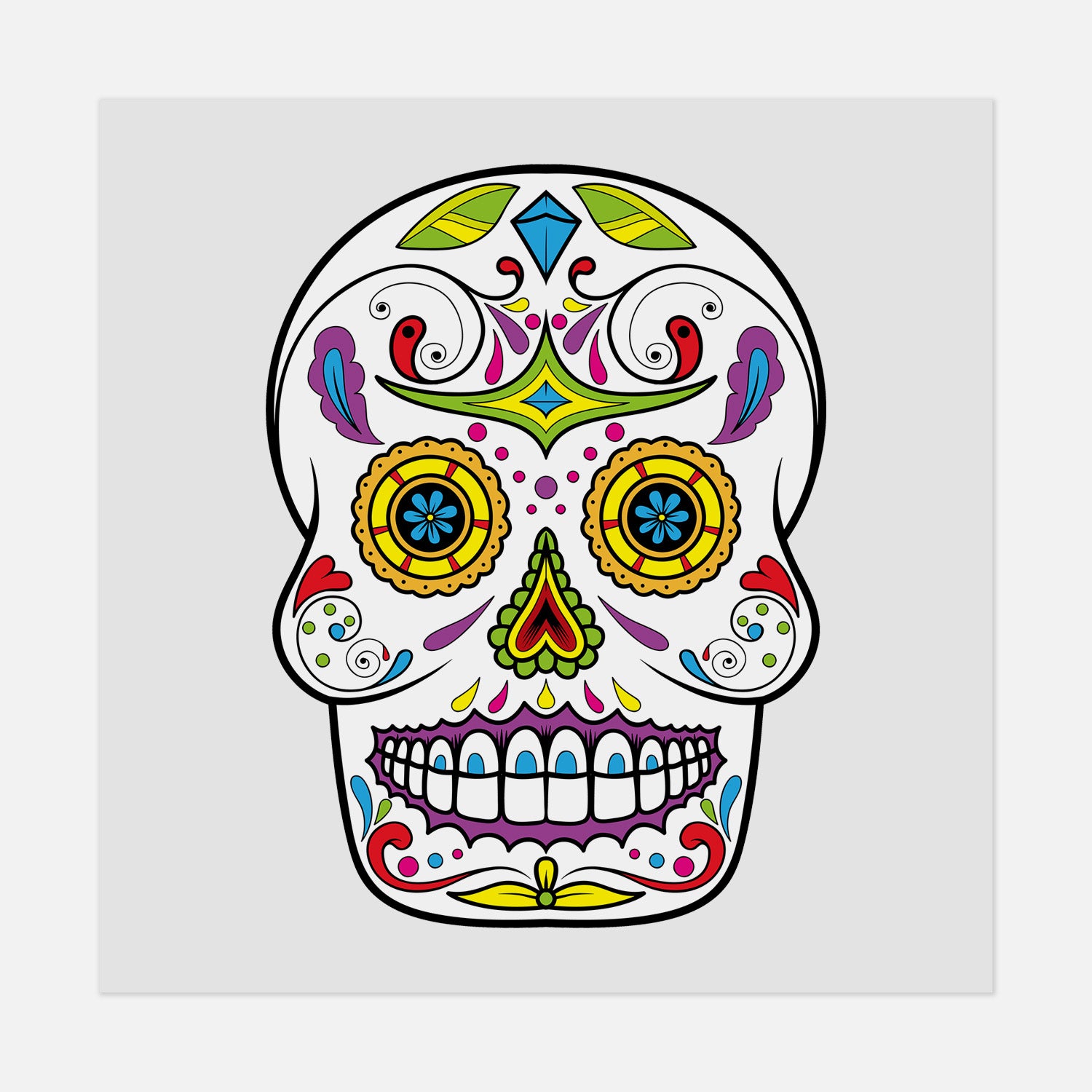 • Cultural Design: Features a beautifully detailed sugar skull inspired by Día de los Muertos, showcasing traditional patterns and vibrant colors.