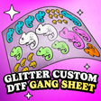 Add some sparkle to your designs with our Glitter Custom Gang Sheet! Perfect for those who want to create eye-catching, glittery designs, this product is ideal for personalized apparel, accessories, and more. Experience the high-quality custom DTF (Direct to Film) glitter transfers for a stunning finish.