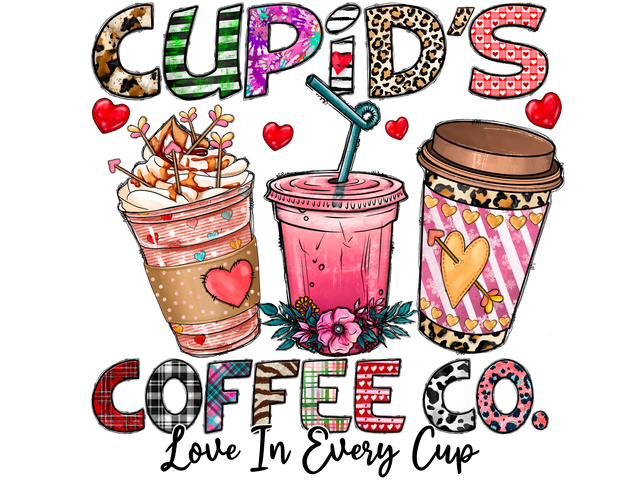 "Cupids Coffee Co Love in evey Cup" DTF TRANSFER