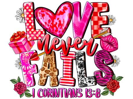 From $2.99Unit price /Unavailable"Love Never Fails I Corntians 13.8" DTF TRANSFER